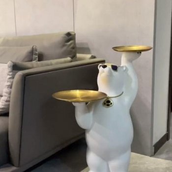 What sets the Luxurious White Bear Tray Sculpture apart is its unique combination of charm and utility. The bear’s cute, simple face and delicate design details create a welcoming atmosphere, while the dual trays offer convenient storage for small items. Whether placed in your living room, bedroom, or porch, this bear tray ornament becomes an eye-catching focal point, adding a touch of elegance to any space. Ideal for those who appreciate both beauty and functionality, this sculpture is perfect for displaying decorative items or holding everyday essentials like keys, jewelry, or remote controls. The sturdy resin construction ensures durability, while the metal trays add a refined, luxurious touch. This piece is not only a decoration but also a practical solution to keep your space tidy and organized.
